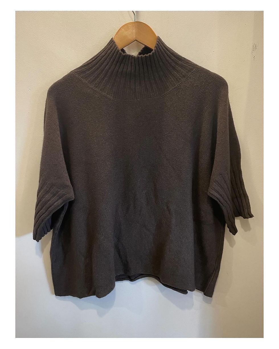 Funnel neck knit elbow length sleeve